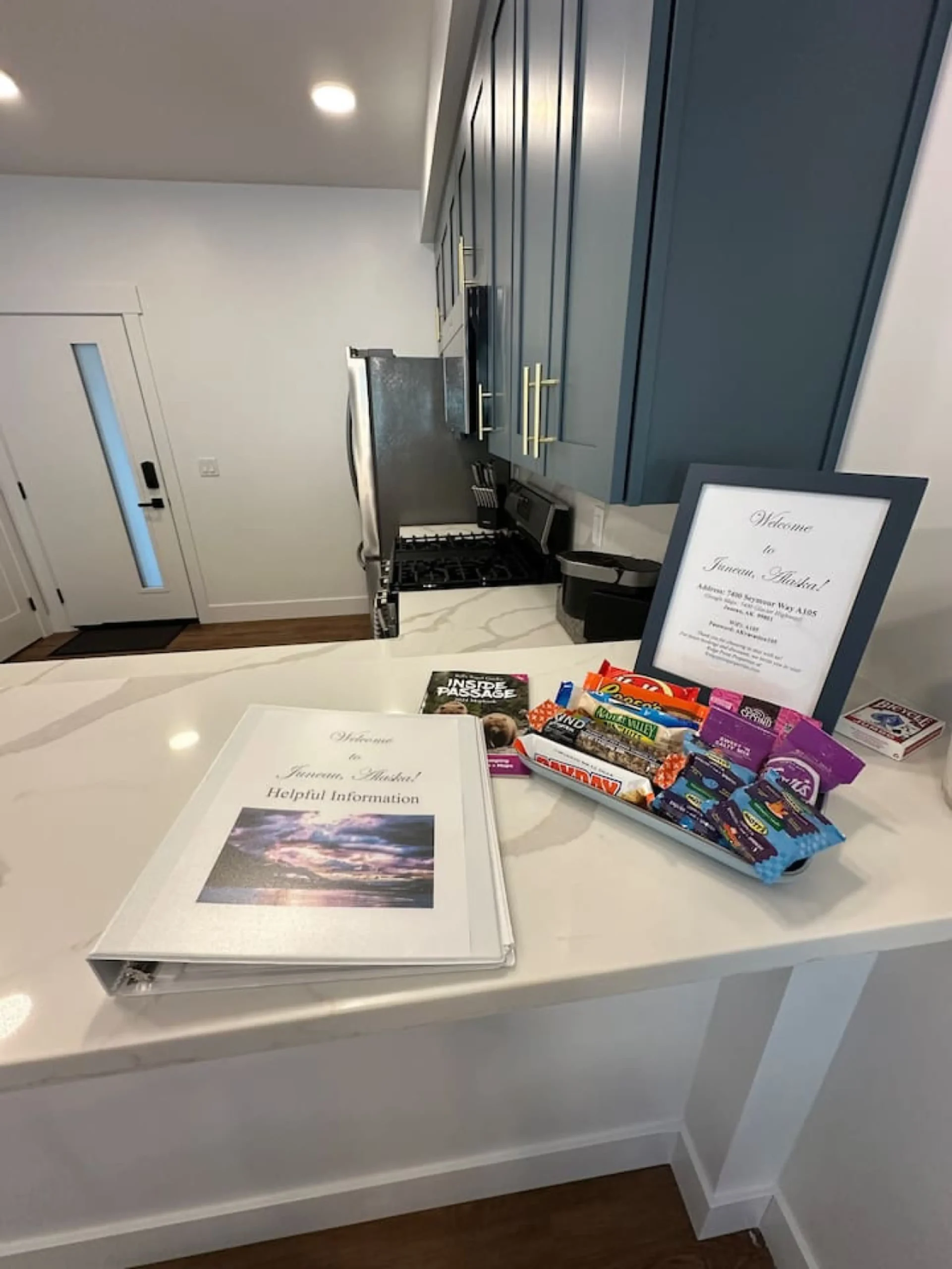 BRAND NEW LISTING Relax in comfort at our cozy retreat, ideally located near the airport, Mendenhall Glacier, and downtown Juneau. Enjoy a plush king bed, fully stocked kitchen, Smart TV, and in-unit laundry. Stay connected with high-speed Wi-Fi and unwind in a smoke-free environment. Perfect for short or extended stays. Stair Access only. Group Getaway? We offer multiple 1- and 2-bedroom units nearby for privacy and connection—ideal for making memories together.